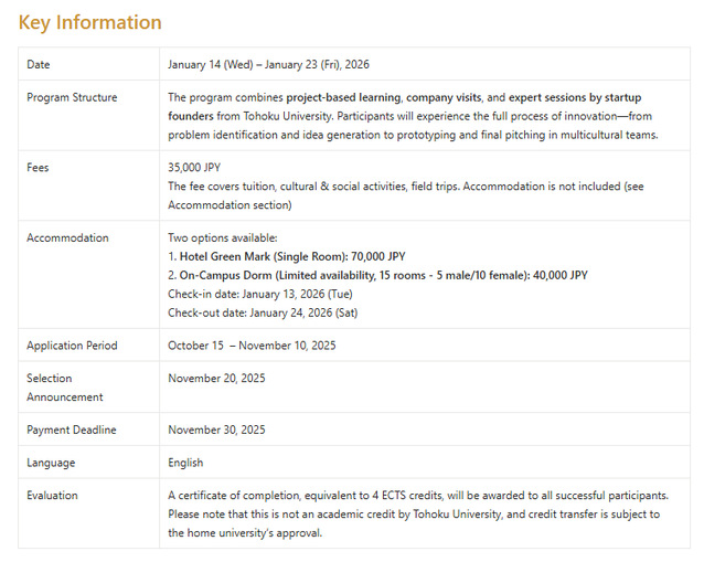 项目官网:Tohoku University Engineering Short Program